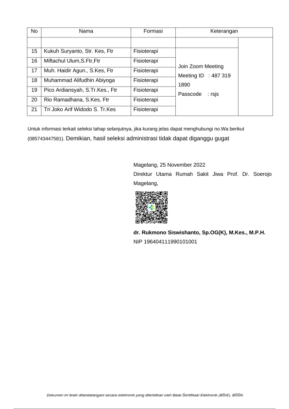 Pengumuman Seleksi Wawancara Fisioterapi