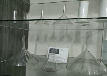 Corong digunakan sebagai alat bantu di laboratorium untuk memindah/memasukkan larutan ke wadah kecil.