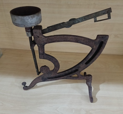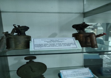 Timbangan presisi dari Belanda untuk benda kecil. Bodi besi dan plat kuningan. Tatakan hilang. |