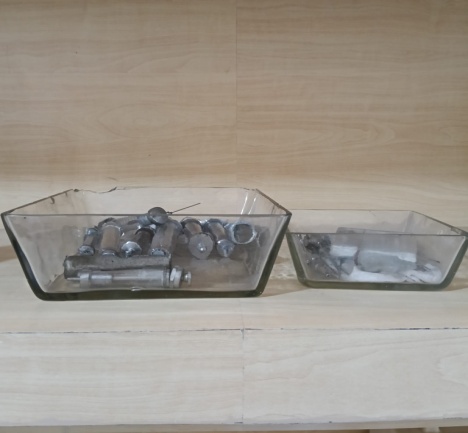 Tempat penyimpanan spuit kaca dan jarum suntik terbuat dari stainles steel. |